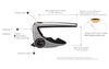 The award-winning Performance 2 guitar capo for Classical and Flamenco guitars with a flat fingerboard features our Unique Tension ControlTM - the fast squeeze-on, squeeze-off action gives you complete and intuitive control over the pressure placed on your strings, meaning significantly improved tuning stability compared to nearly all other capos.