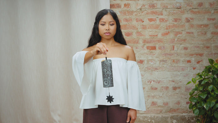 The Meinl Sonic Energy Cosmic Bamboo Chimes produce soft resonant tones that fill your space with serene sound. Use for meditation, sound baths, and yoga. Or create a relaxing space at home for reflection. Hold the cord and gently swing the chime to activate its sound. Inside is a pendulum and a group of metal tines tuned to specific pitches. Easily modify the tone by switching between the two pendulums: acrylic (hard) and wood (soft). Insert the clasp end of the pendulum through the bottom of the chimes. Attach the clasp to the hook on the wood crossbar. Pull the braided cord straight and pick it up to play the chimes. Available in four tunings matched to the time of day: Aurora (morning), Sol (day), Luna (evening), and Stella (night). Combine two or more to build contrast in mood. Each chime comes with two additional spare pendulums (acrylic, wood).